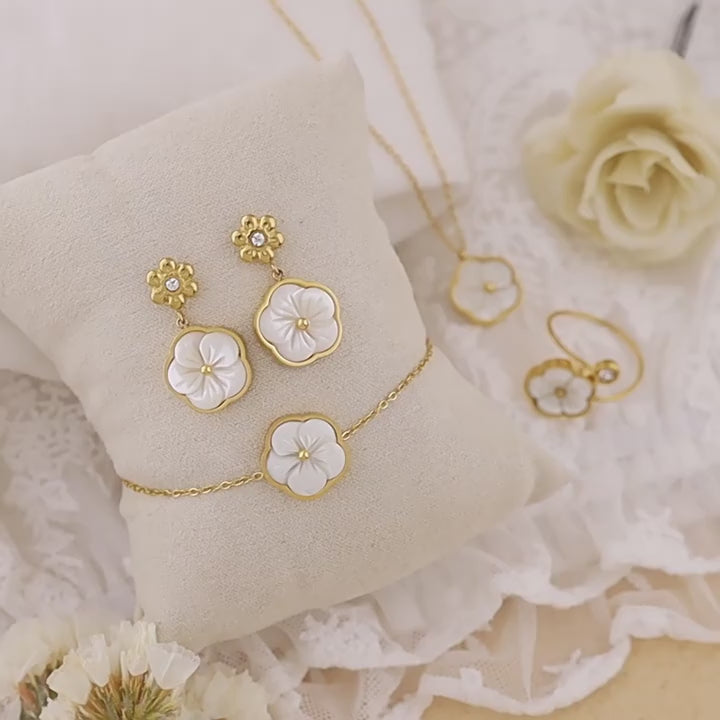 This Flower Pendant Necklace, Bracelet, and Ring Set is the perfect combination of elegance and charm. The beautiful flower pendant is crafted with intricate detailing, making it a standout piece in any jewelry collection. The set includes a necklace, bracelet, and ring, all made from high-quality 316L titanium steel, shells, and crystal materials, ensuring both durability and beauty. Whether for casual wear, formal events, or as a special gift, this jewelry set adds a touch of sophistication to any outfit.