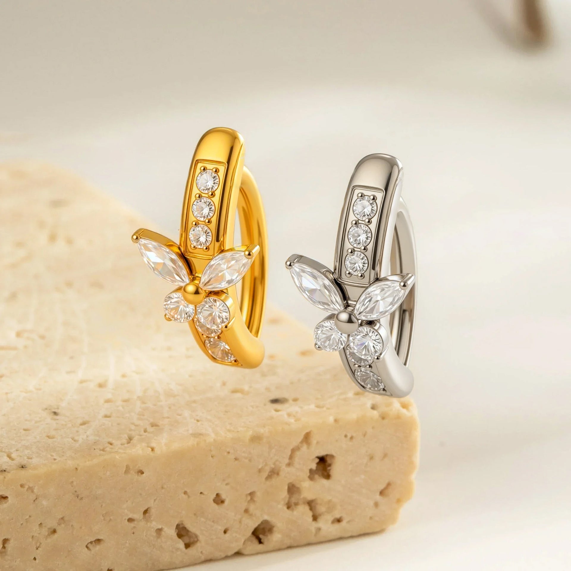 G23/F136 Titanium Butterfly Zircon Belly Button Ring | Navel Piercing Jewelry