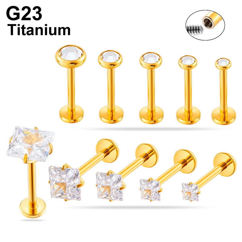 The G23/F136 Titanium CZ Cartilage Stud Earrings Series combines premium titanium material with an internally threaded flat-back design for comfortable, secure wear. Geometric shapes like square, round, showcase personal style and fashion-forward aesthetics.