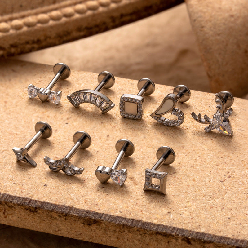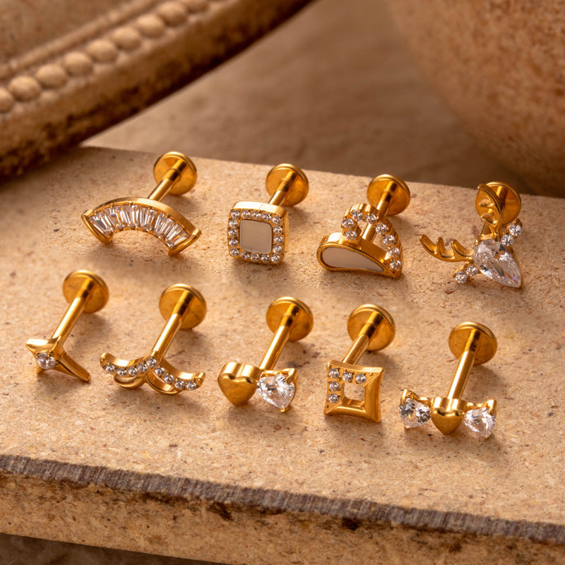 Design: with finely set zircon stones, enhancing the charm and elegance of lip and ear piercings.