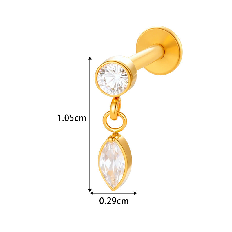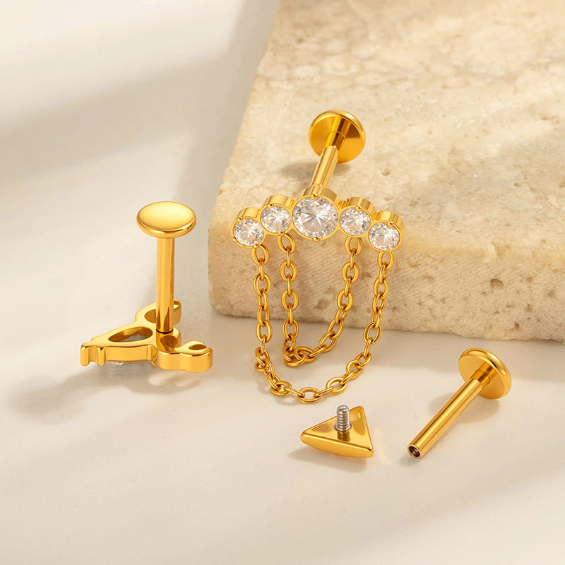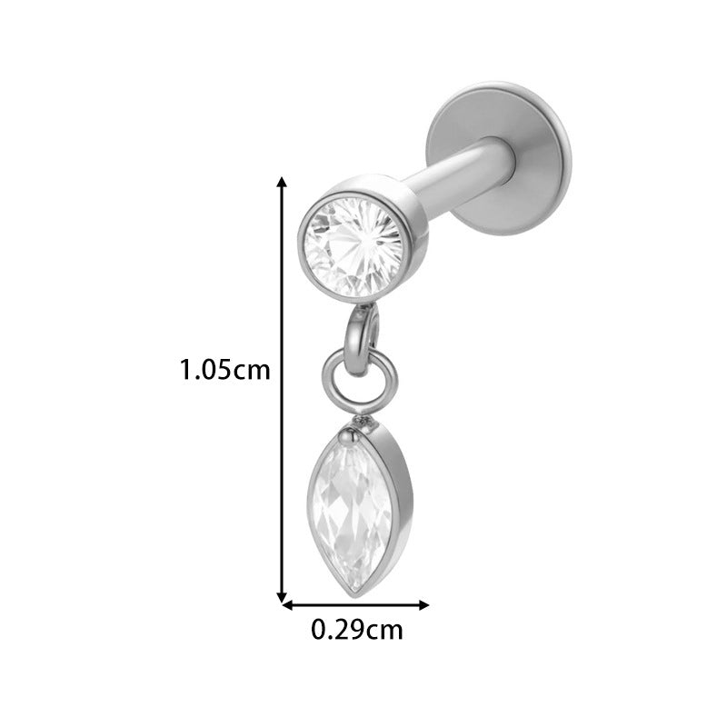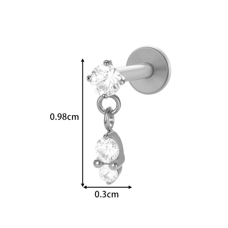 G23/F136 Titanium Piercing with Zircon Pendant Chain – Threaded Flat-Top Lip & Cartilage Piercing Earring Jewelry