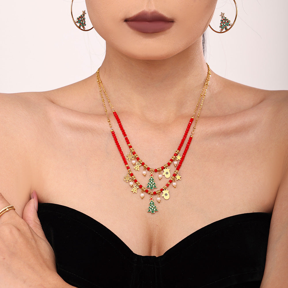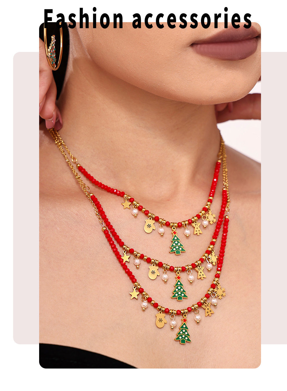 Ideal Gift: A thoughtful jewelry piece for Christmas, birthdays, or winter celebrations Parameter Description Product Name Gold Stainless Steel Christmas Tree Star Snowflake Pendant Necklace Material Stainless Steel + Garnet + Zircon + Enamel Color Gold with Green and Red Accents Plating 18K Gold Plated Style Christmas / Holiday / Festive Weight 7.3g Length 43+5cm Model Number P1668 - Gold Garnet Christmas Tree Necklace Occasion Christmas, Party, Gift, Daily Wear Gender Women / Unisex Packaging Individual OPP Bag or Custom Gift Box Customization Available (OEM / ODM)