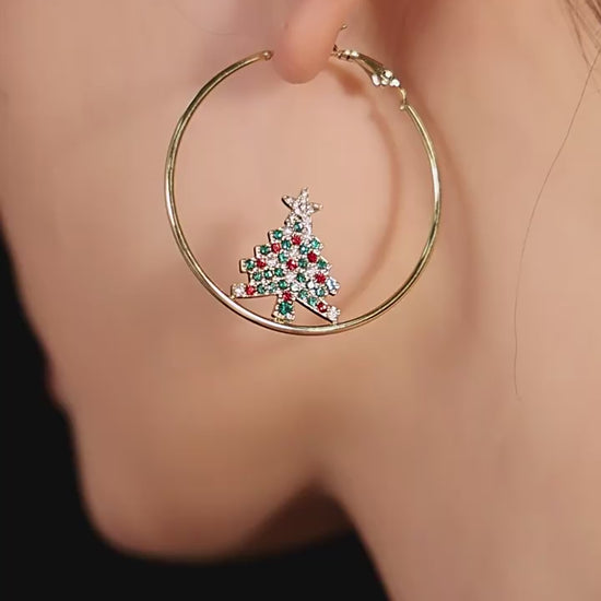 Gold Stainless Steel Christmas Tree Zircon Hoop Earrings | Festive Statement Jewelry for Holiday Style – WANTI Jewelry