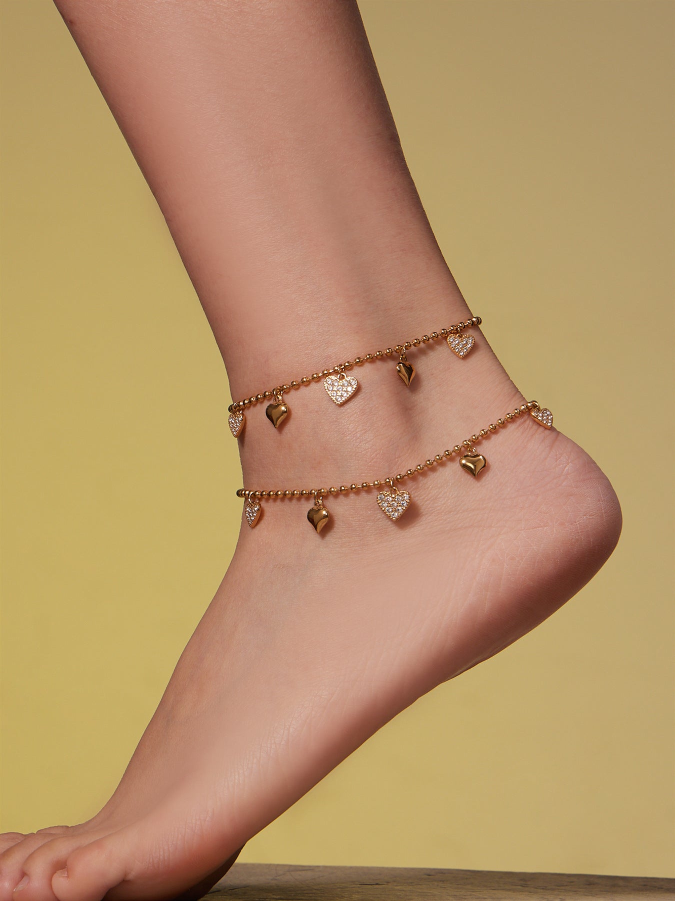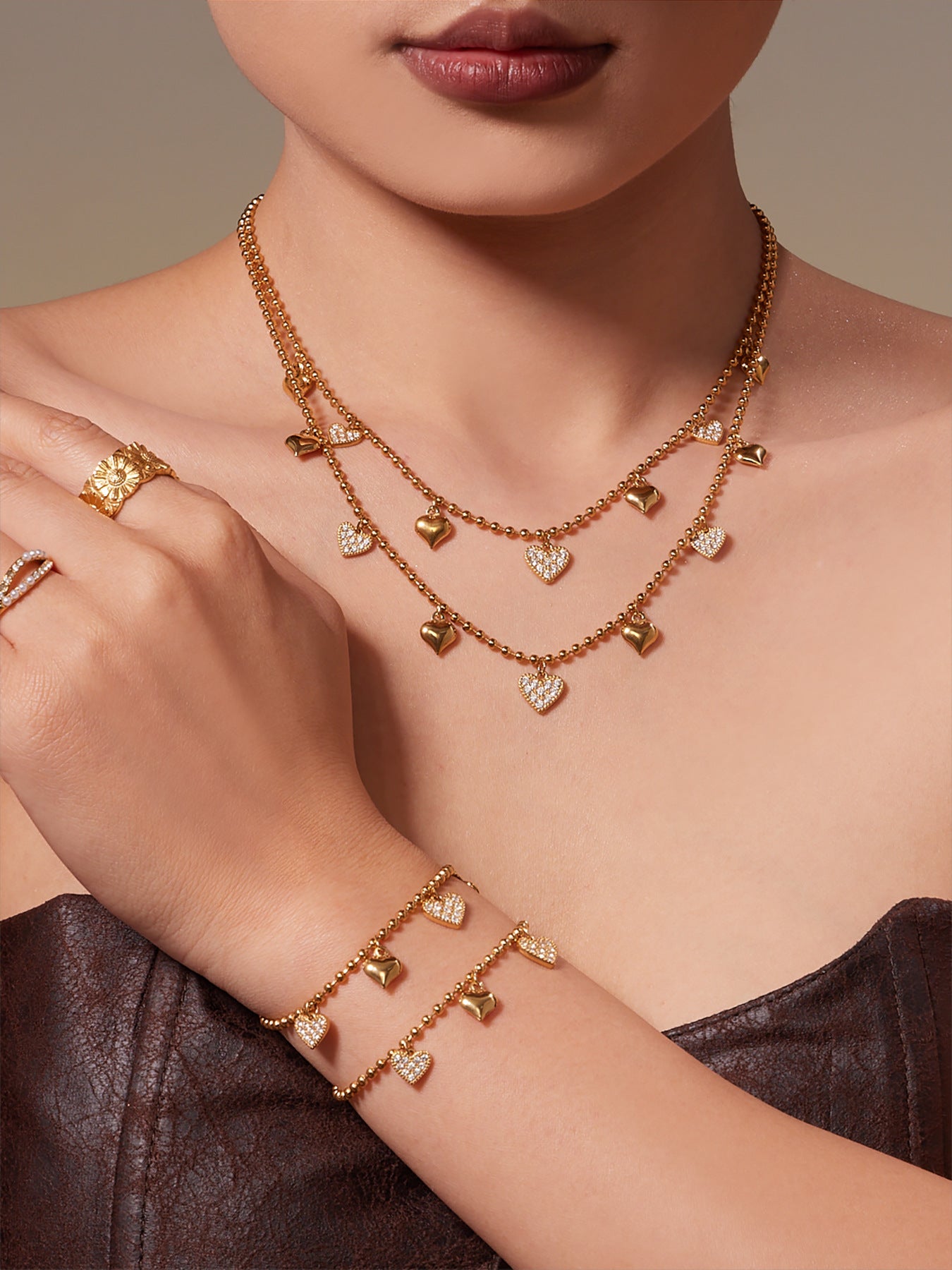 This collection includes a heart pendant necklace, bracelet, anklet, and matching earrings, offering effortless styling for daily outfits, special dates, or gifting moments.