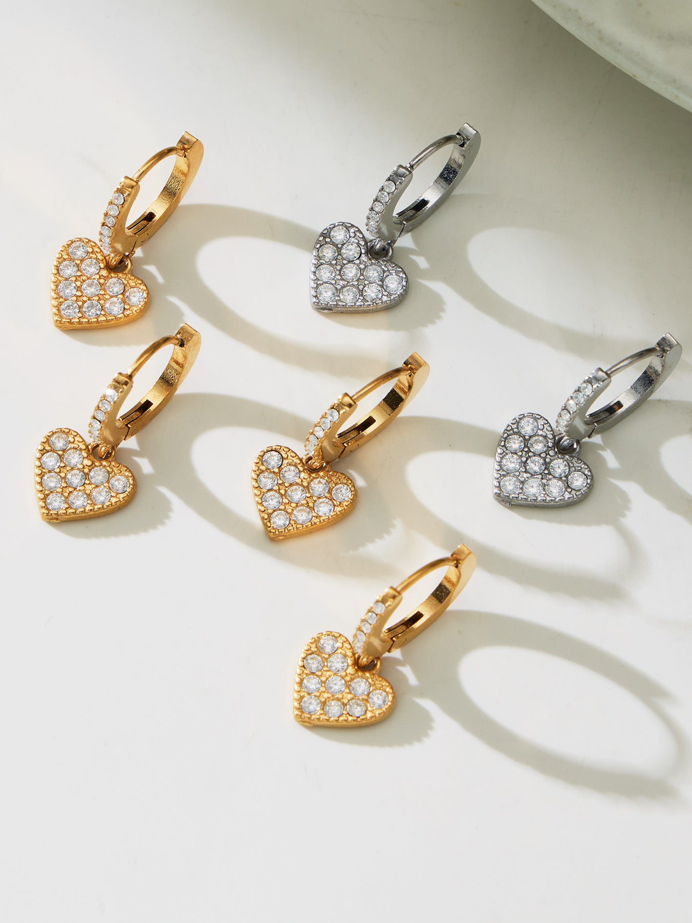 Each piece is crafted from high-quality stainless steel with a hollow heart silhouette, set with premium zircon stones for a bright, refined shine. Lightweight, hypoallergenic, and waterproof, this set is perfect for everyday wear and long-lasting durability.