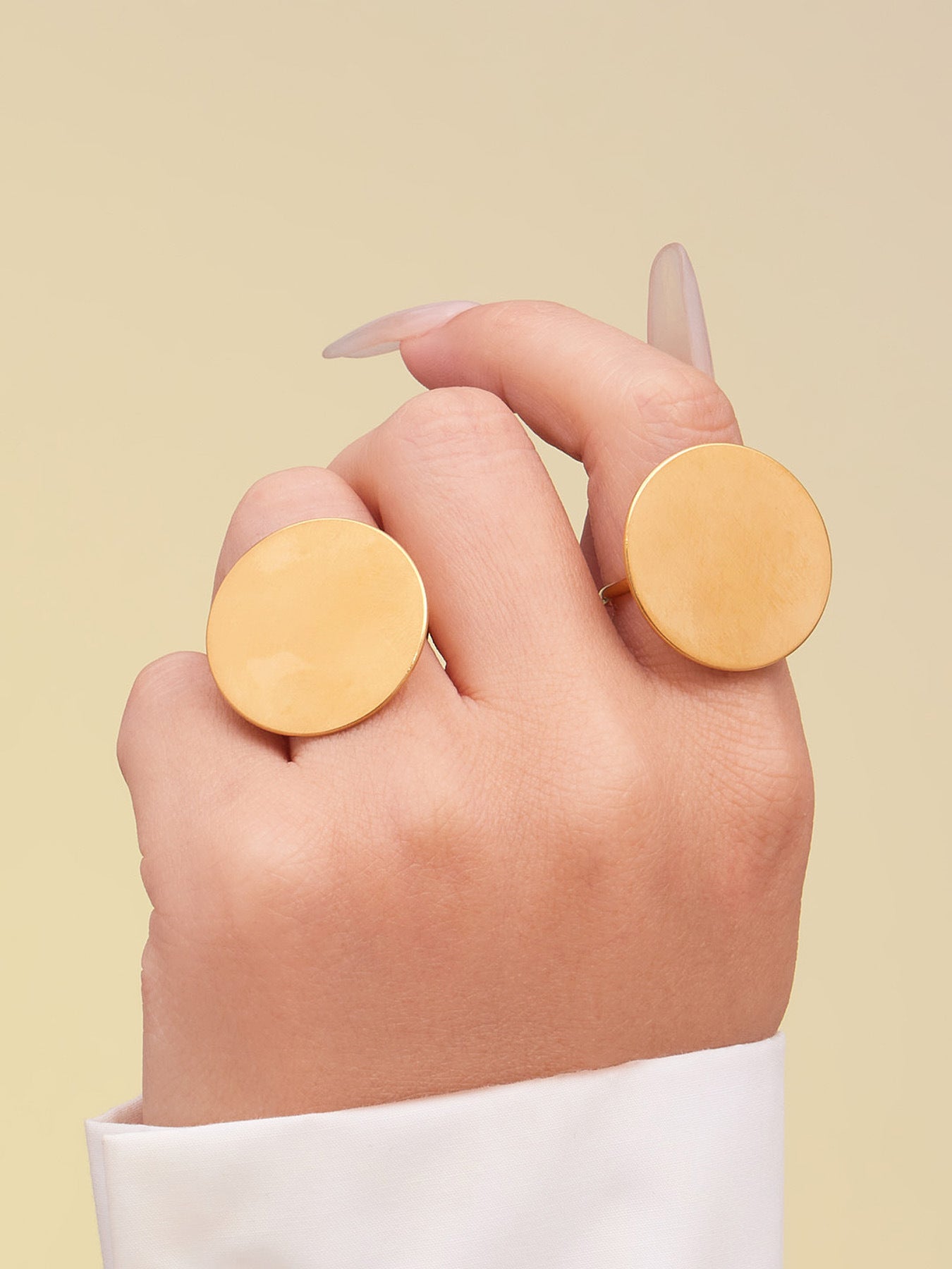 Stainless Steel Long Pendant Sweater Necklace, Drop Earrings & Ring Set – Gold Minimalist Round Disc Jewelry