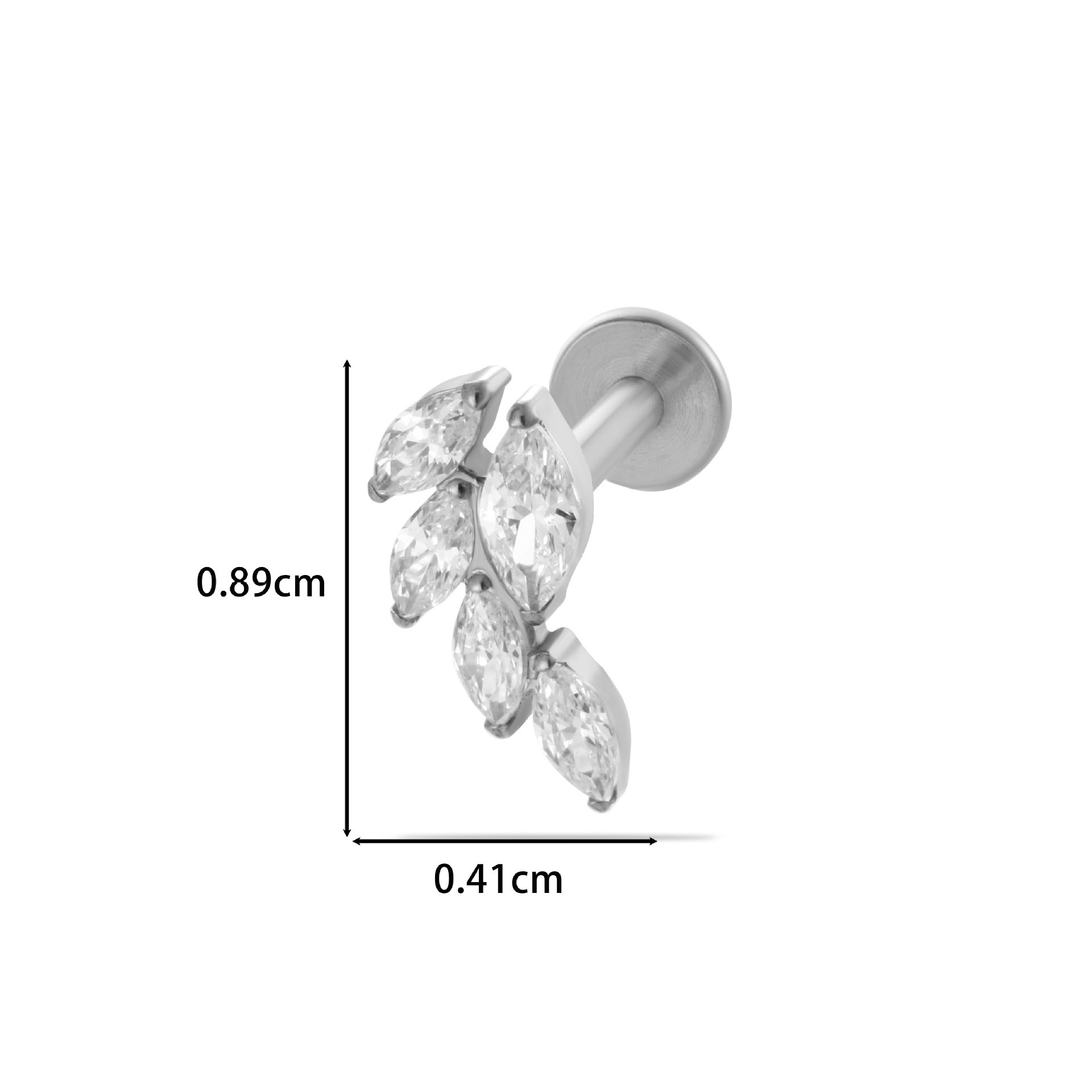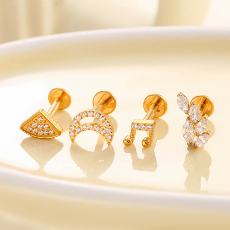 F136 Titanium Internally Threaded CZ Ear Stud – Music Note, Fan, Moon & Cluster Designs | Lip Labret Cartilage Piercing Jewelry