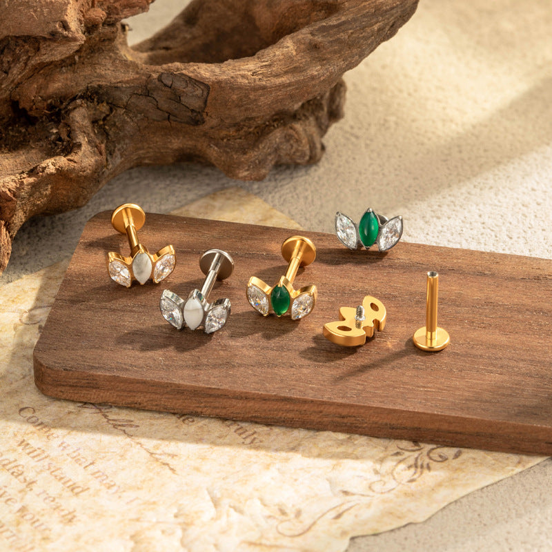 G23/F136 Titanium Marquise CZ Leaf Internal Thread Flat Back Piercing Jewelry – 7 Styles