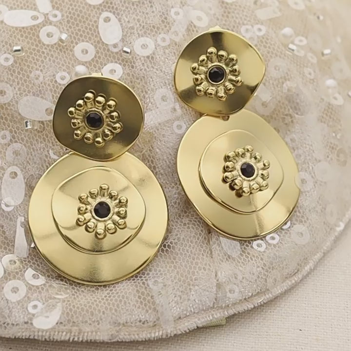 These earrings feature a classic round floral design that blends retro charm with modern sophistication, making them perfect for both daily wear and special occasions.
